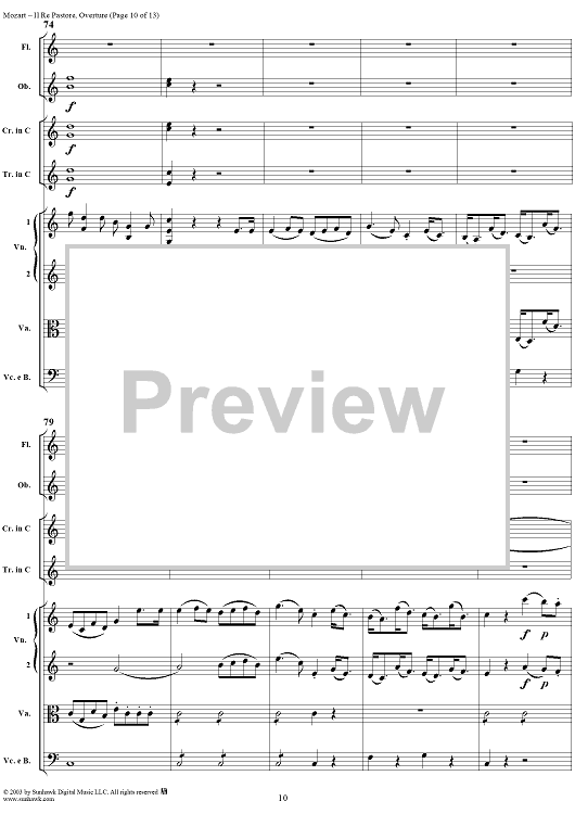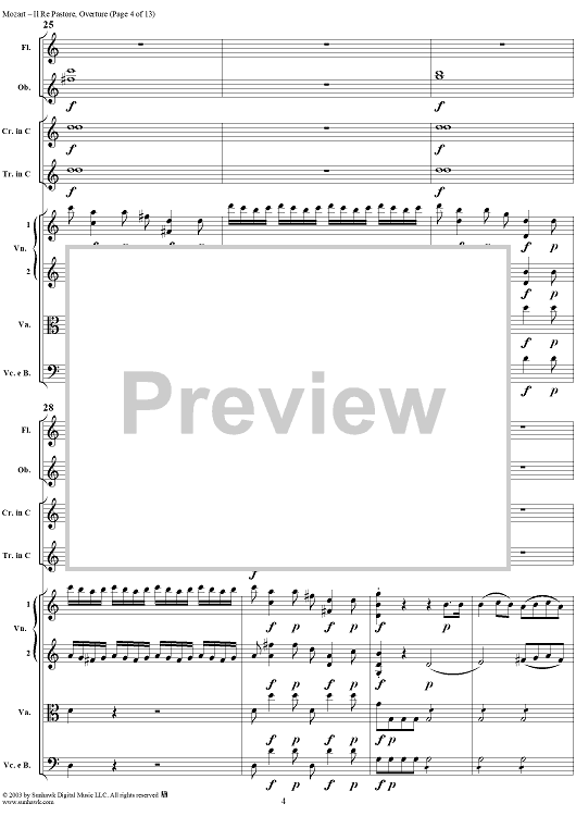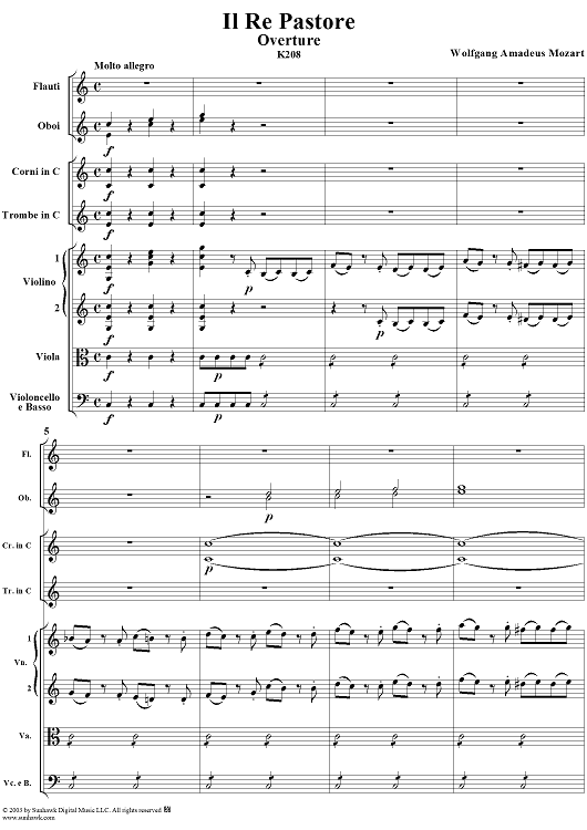 "Overture from "Il Re Pastore" (K208) - Full Score" Sheet Music by Wolfgang Amadeus Mozart