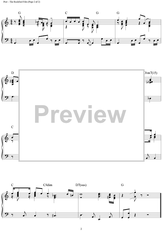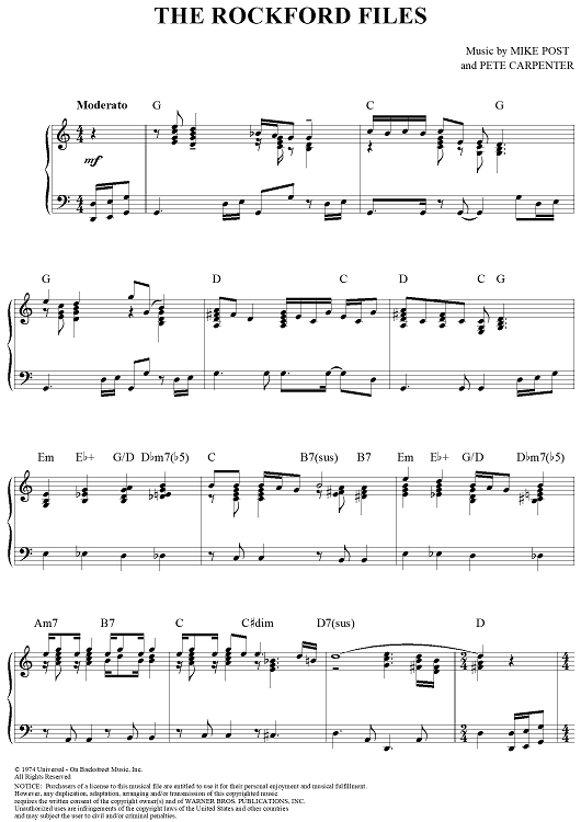 Digital Sheet Music for The Rockford Files by Mike Post, Pete Carpenter scored for Piano Solo; id:288968