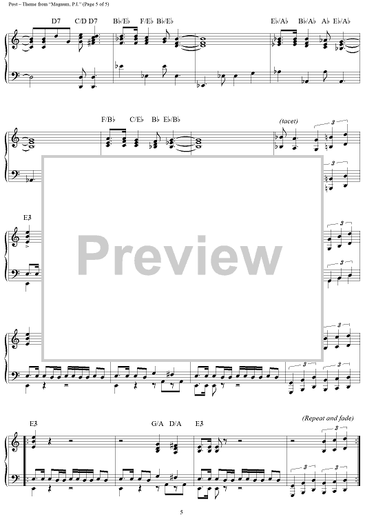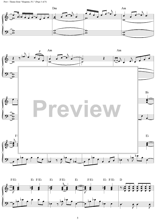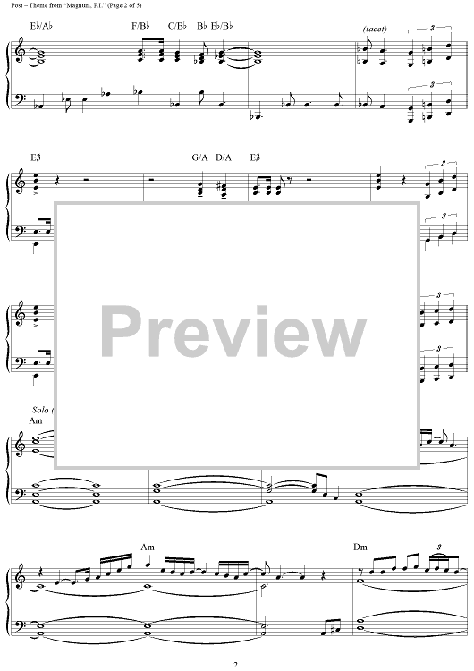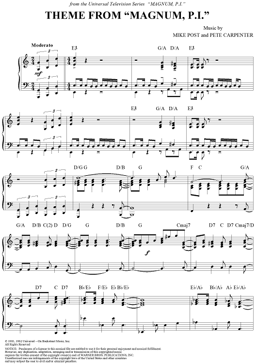 Digital Sheet Music for Theme from “Magnum, P.I.” by Mike Post, Pete Carpenter scored for Piano Solo; id:289022