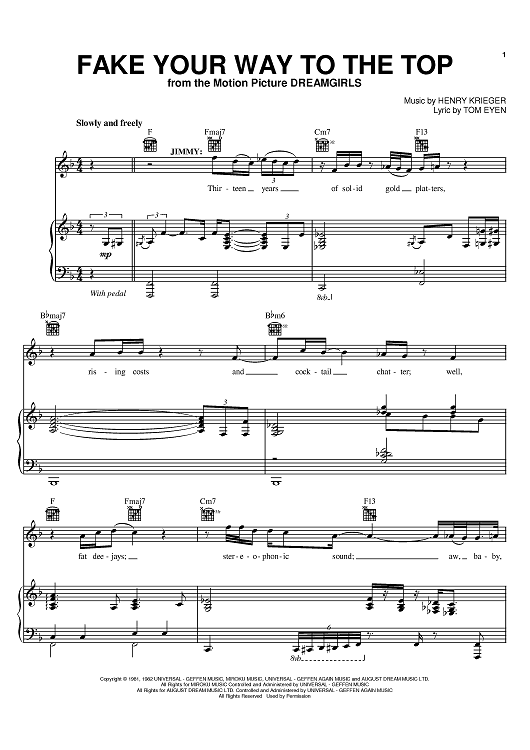 Digital Sheet Music for Fake Your Way To The Top by Henry Krieger, Tom Eyen, Jennifer Hudson scored for Piano/Vocal/Chords; id:395769