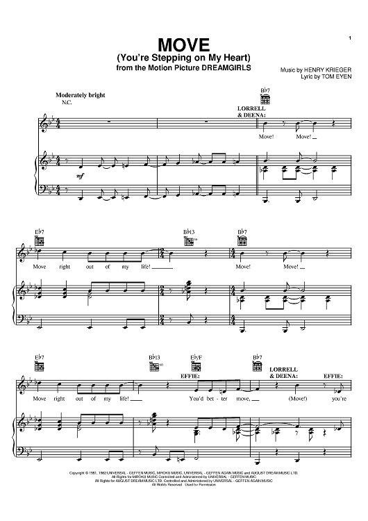 Digital Sheet Music for Move (You're Stepping On My Heart) by Henry Krieger, Tom Eyen, Jennifer Hudson scored for Piano/Vocal/Chords; id:395771
