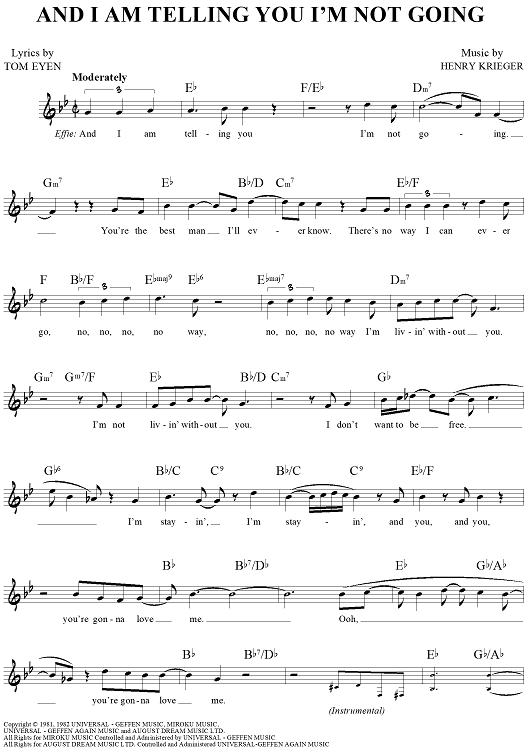 Digital Sheet Music for And I Am Telling You I'm Not Going by Henry Krieger, Tom Eyen scored for Lead Sheet; id:442035