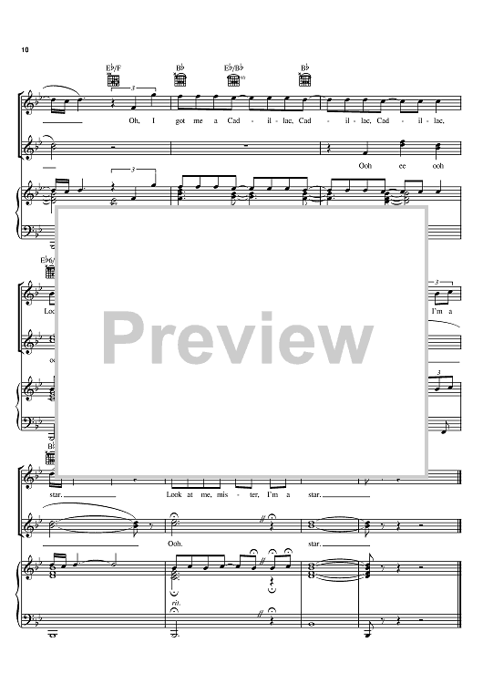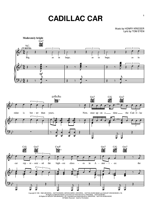 Digital Sheet Music for Cadillac Car by Henry Krieger, Tom Eyen scored for Piano/Vocal/Chords; id:394662