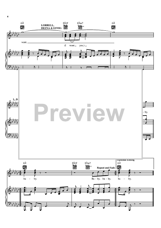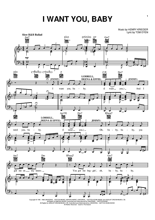 Digital Sheet Music for I Want You, Baby by Henry Krieger, Tom Eyen scored for Piano/Vocal/Chords; id:394668