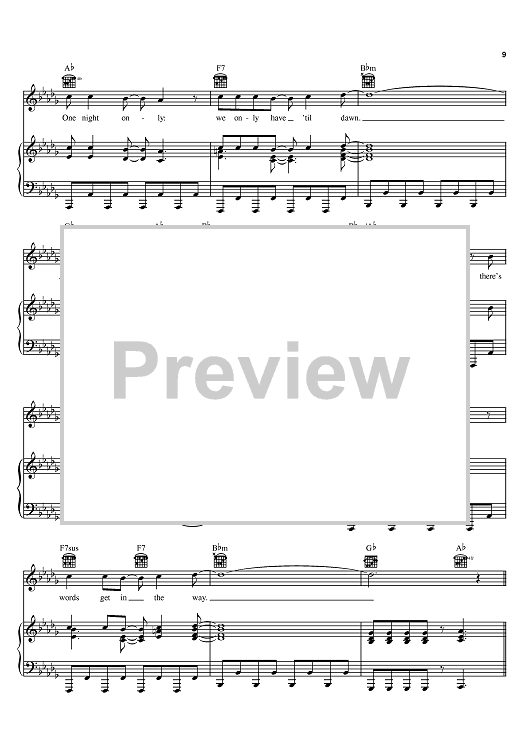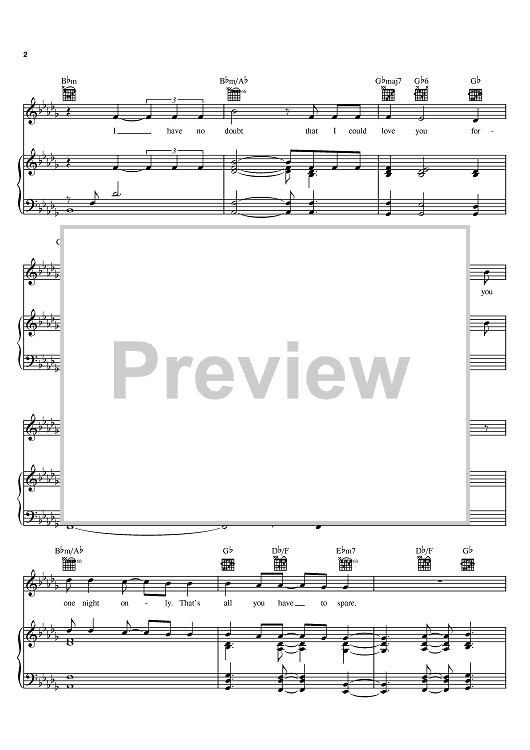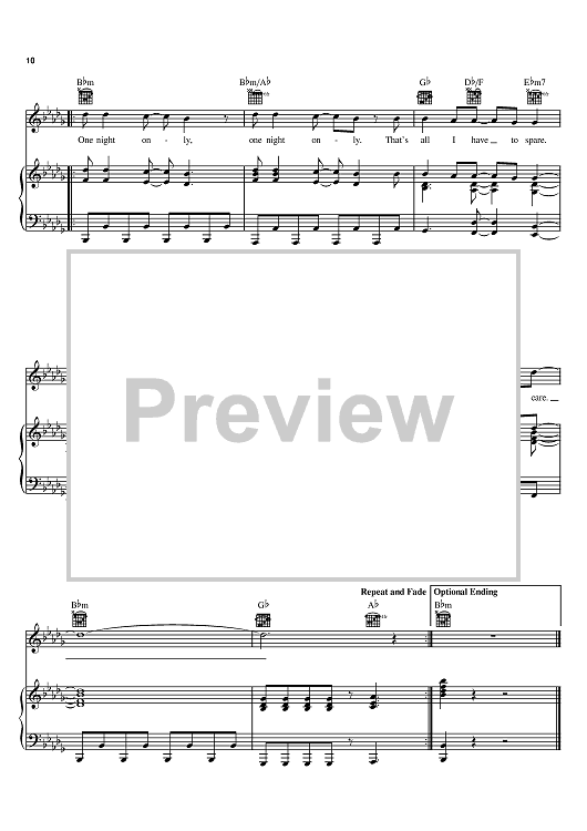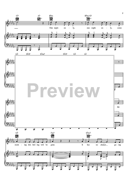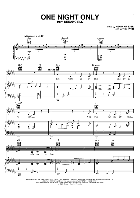 Digital Sheet Music for One Night Only by Henry Krieger, Tom Eyen scored for Piano/Vocal/Chords; id:394659