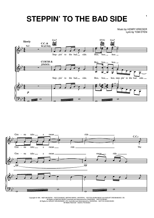 Digital Sheet Music for Steppin' To The Bad Side by Henry Krieger, Tom Eyen scored for Piano/Vocal/Chords; id:394665