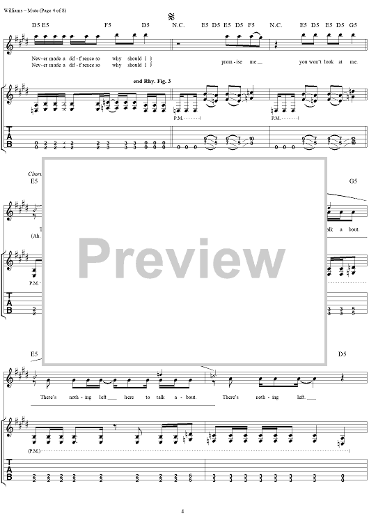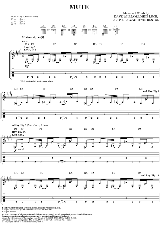 Digital Sheet Music for Mute by David Vincent Williams, Drowning Pool, C. J. Pierce, Stevie Benton, Mike Luce scored for Guitar Tab/Vocal; id:304427