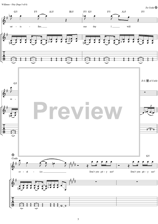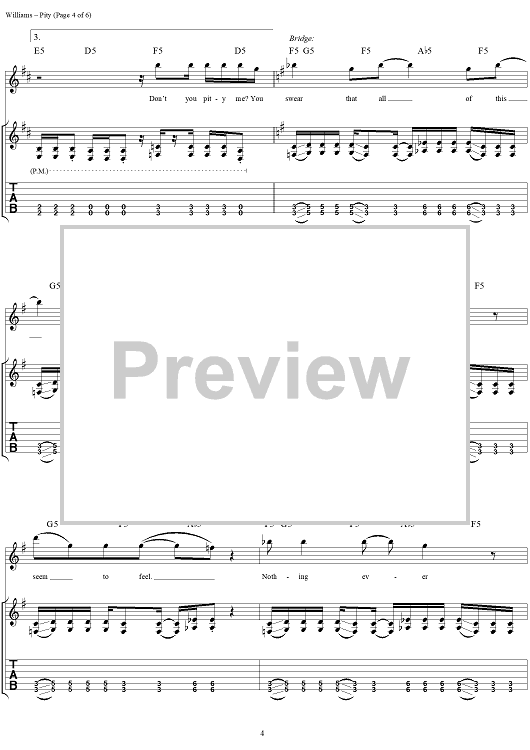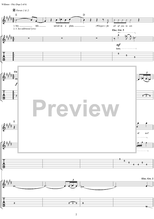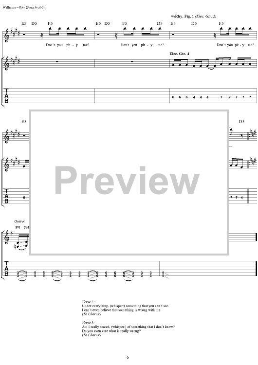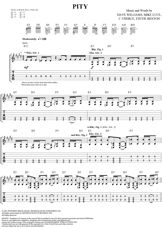 Digital Sheet Music for Pity by David Vincent Williams, Drowning Pool, C. J. Pierce, Stevie Benton, Mike Luce scored for Guitar Tab/Vocal; id:304428