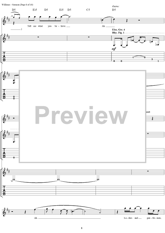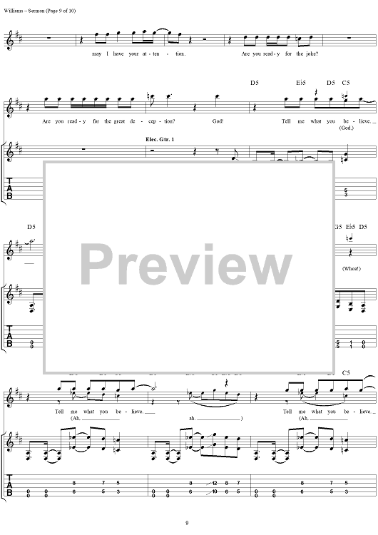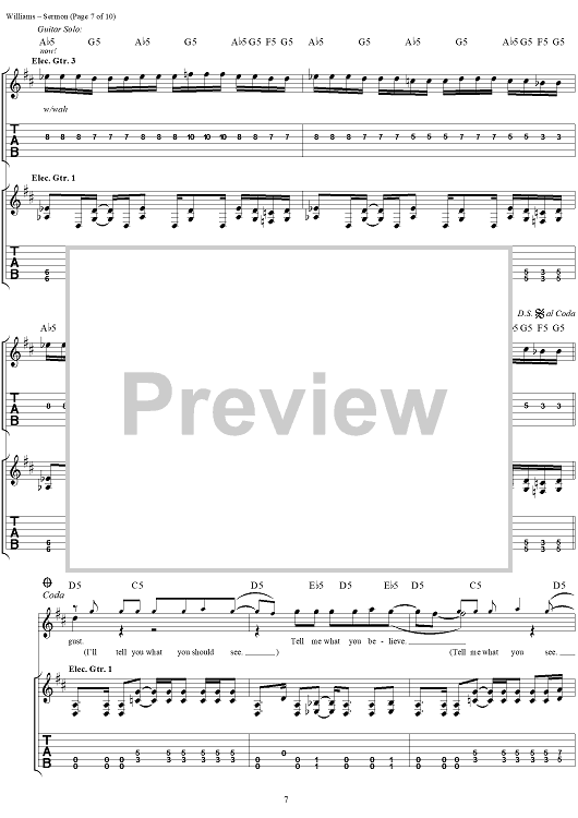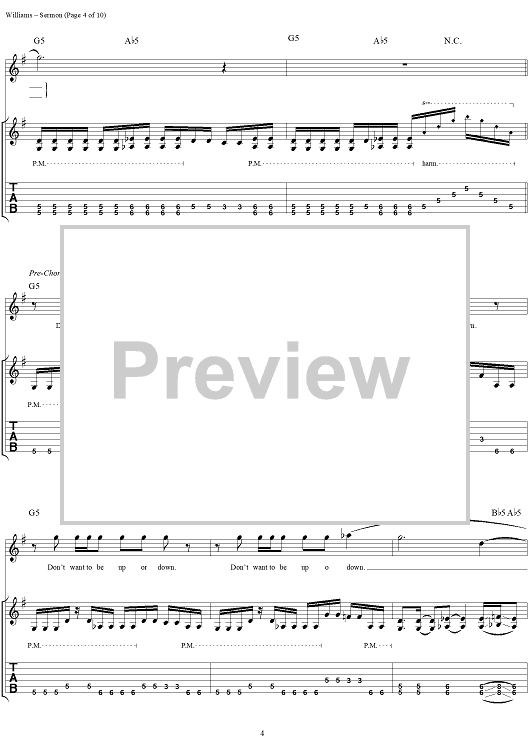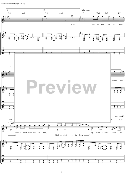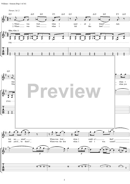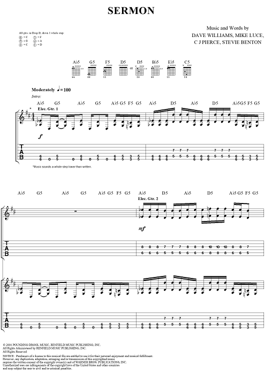 Digital Sheet Music for Sermon by David Vincent Williams, Drowning Pool, C. J. Pierce, Stevie Benton, Mike Luce scored for Guitar Tab/Vocal; id:304429