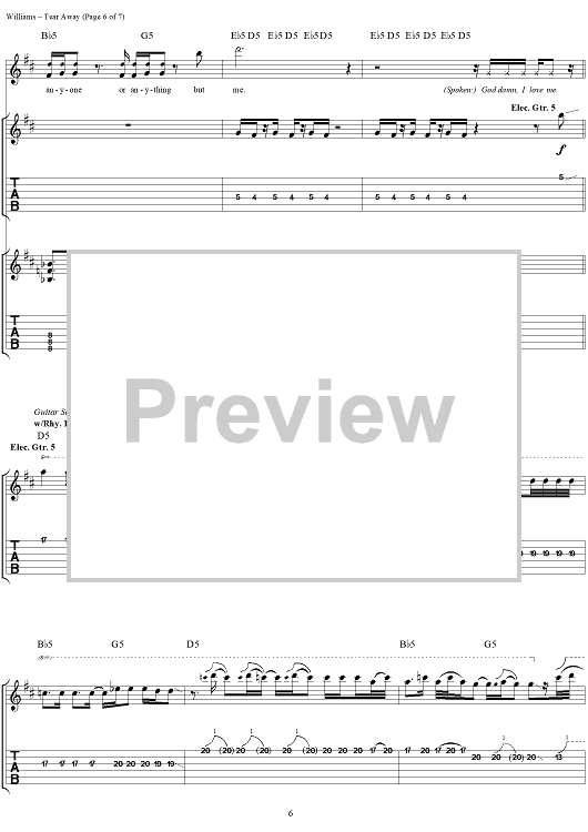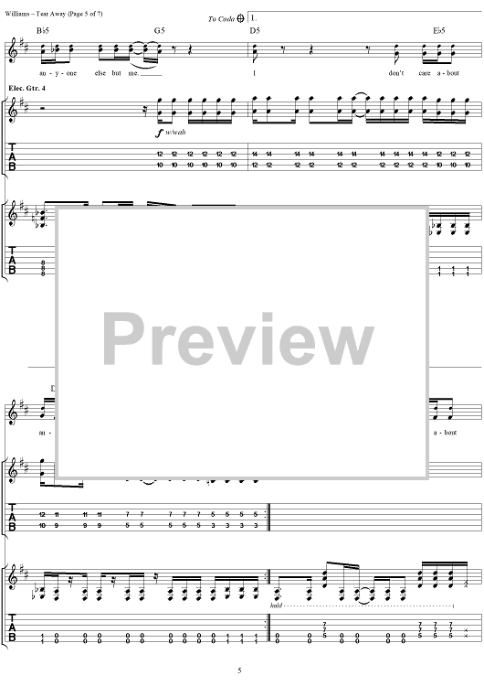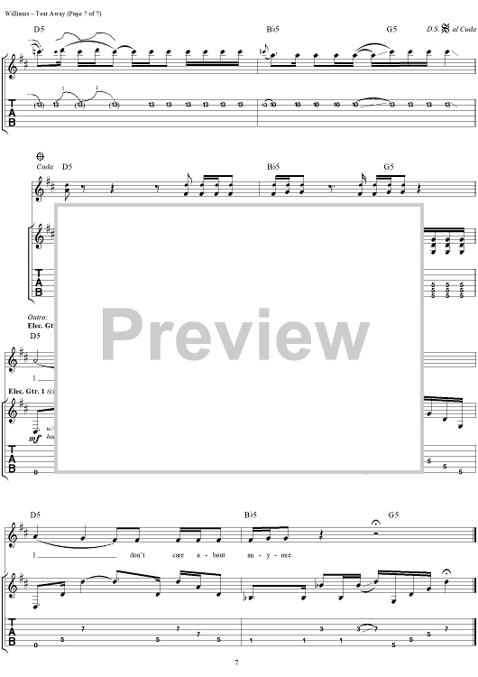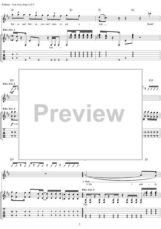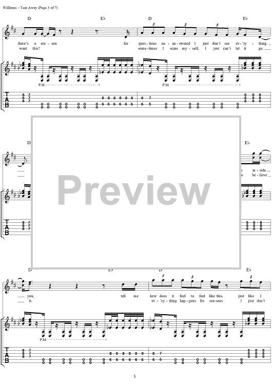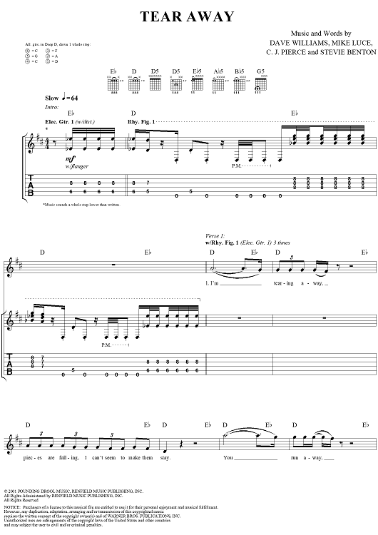 Digital Sheet Music for Tear Away by David Vincent Williams, Drowning Pool, C. J. Pierce, Stevie Benton, Mike Luce scored for Guitar Tab/Vocal; id:304432