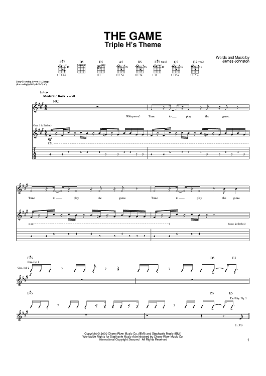 Digital Sheet Music for The Game by Drowning Pool, James Johnston scored for Guitar Tab; id:371239