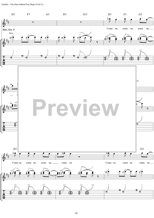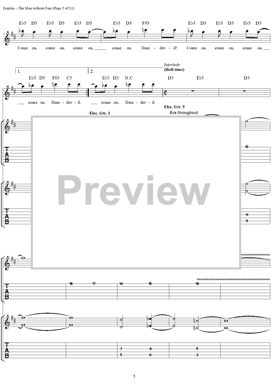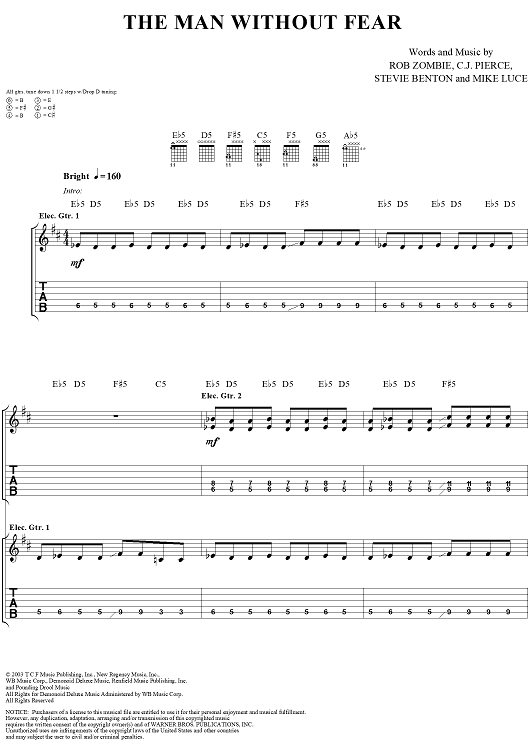 Digital Sheet Music for The Man Without Fear by Rob Zombie, Drowning Pool, C. J. Pierce, Stevie Benton, Mike Luce scored for Guitar Tab/Vocal; id:297329