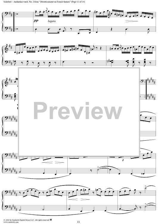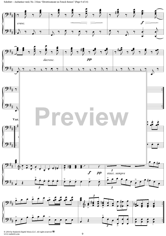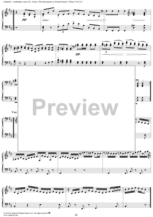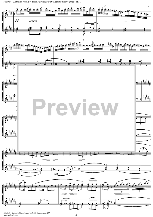 Digital Sheet Music for Andantino varié, No. 2 from "Divertissement on French themes" by Franz Schubert scored for 1 Piano, 4 Hands; id:297990