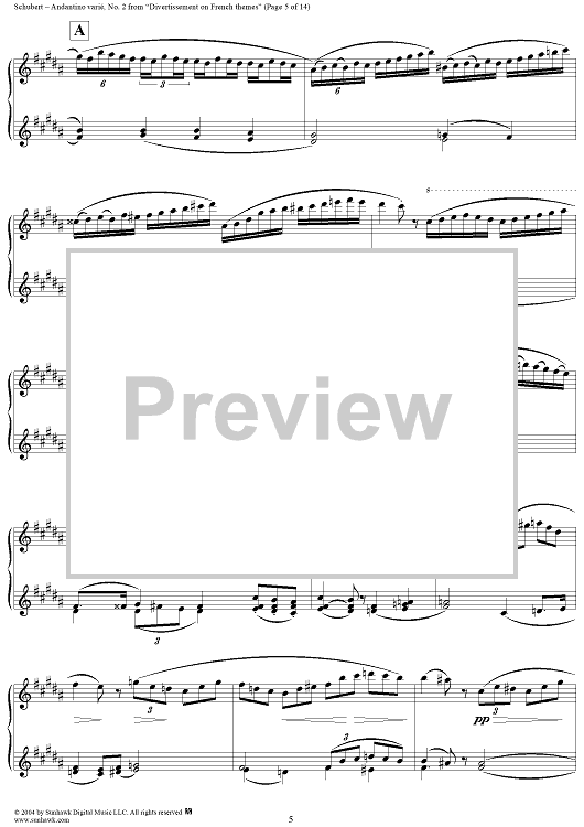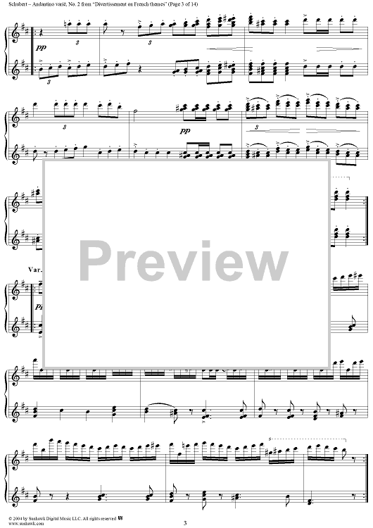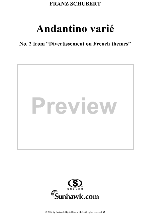 "Andantino varié, No. 2 from "Divertissement on French themes"" Sheet Music by Franz Schubert