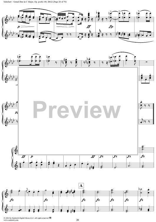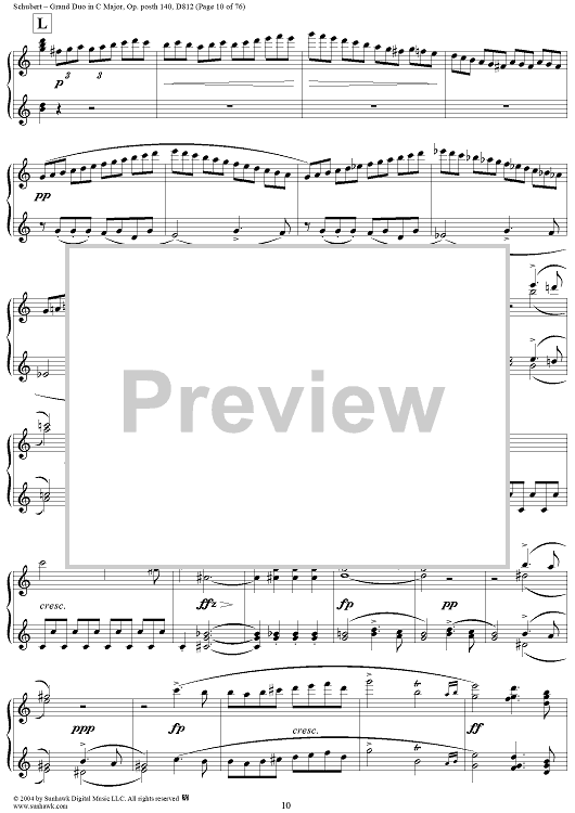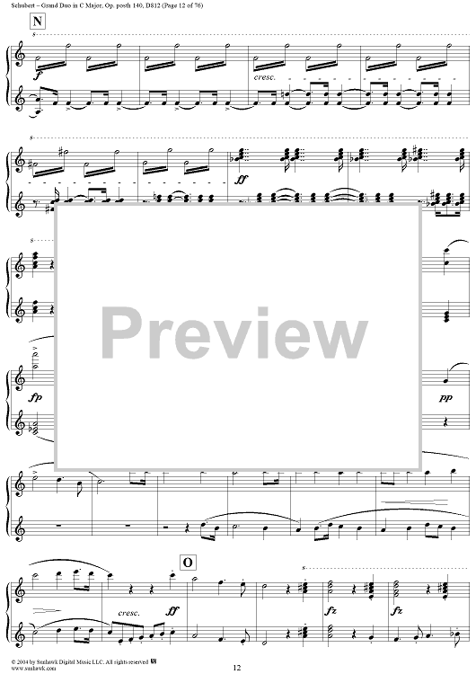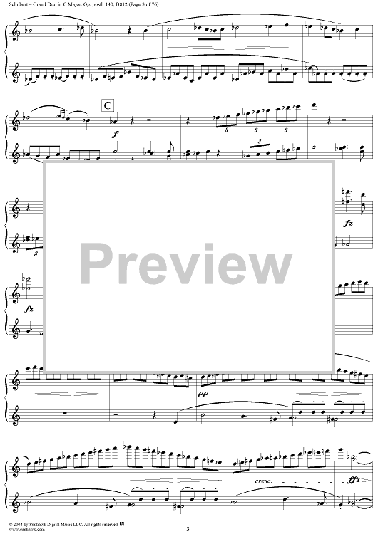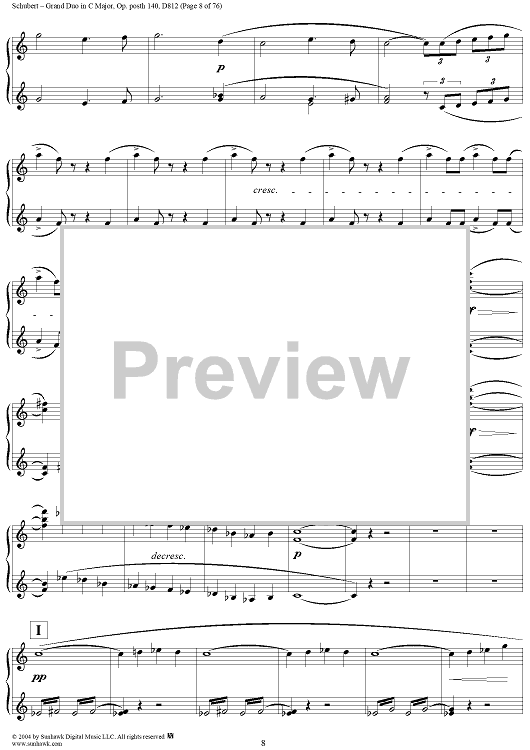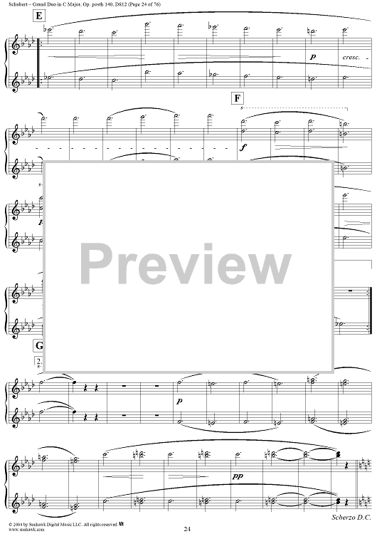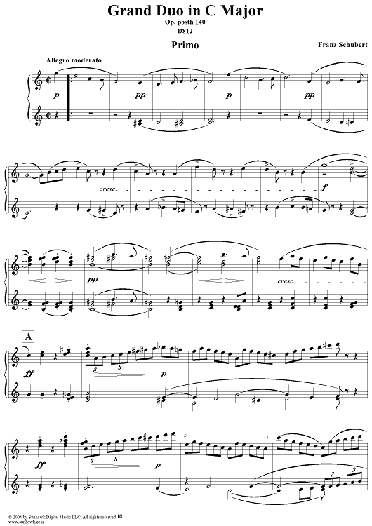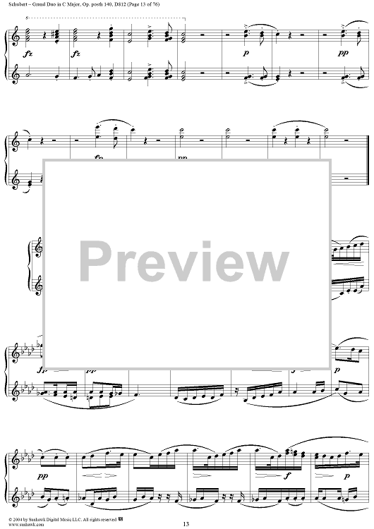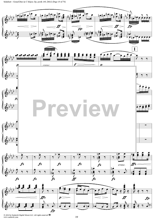 Digital Sheet Music for Grand Duo (Sonata) in C Major, Op.posth 140 by Franz Schubert scored for 1 Piano, 4 Hands; id:297976