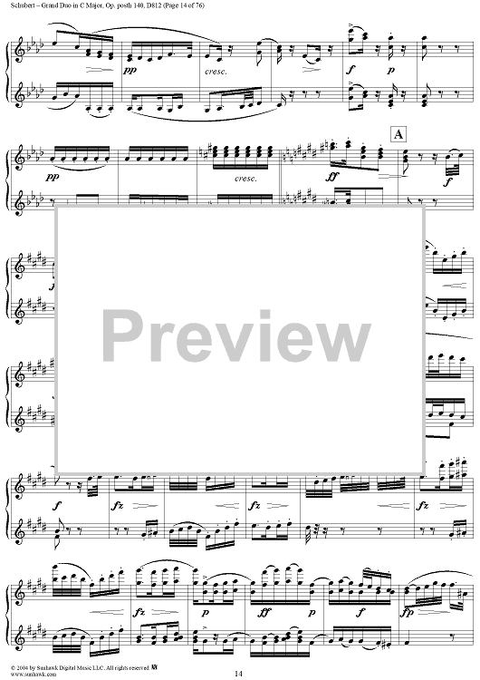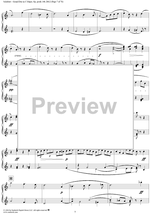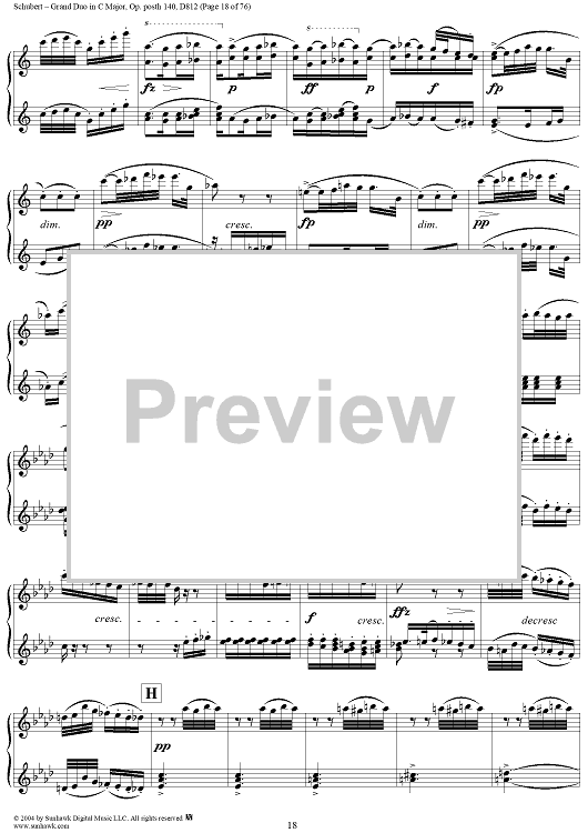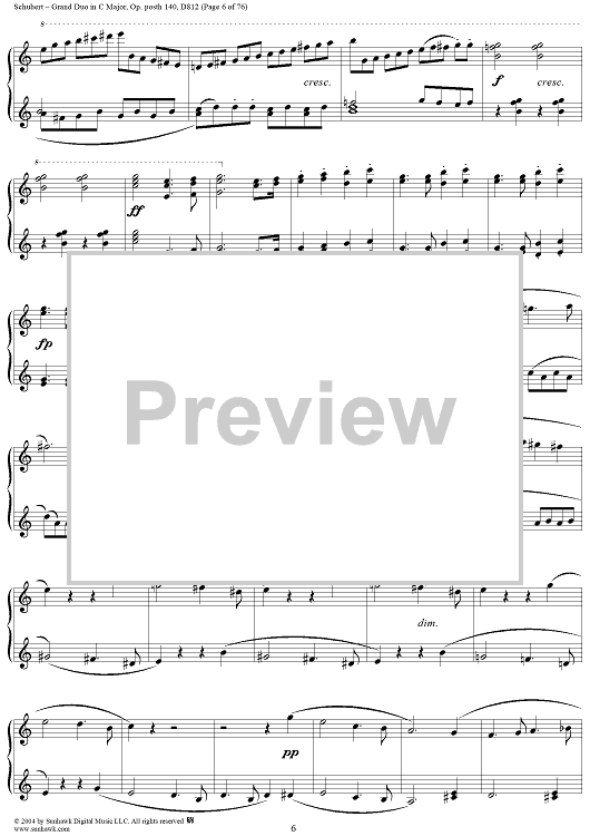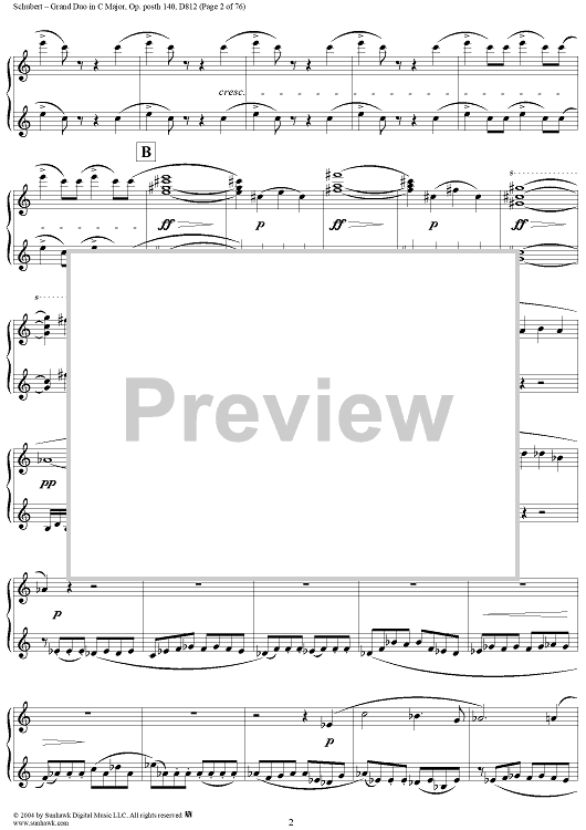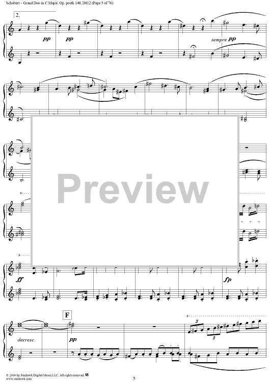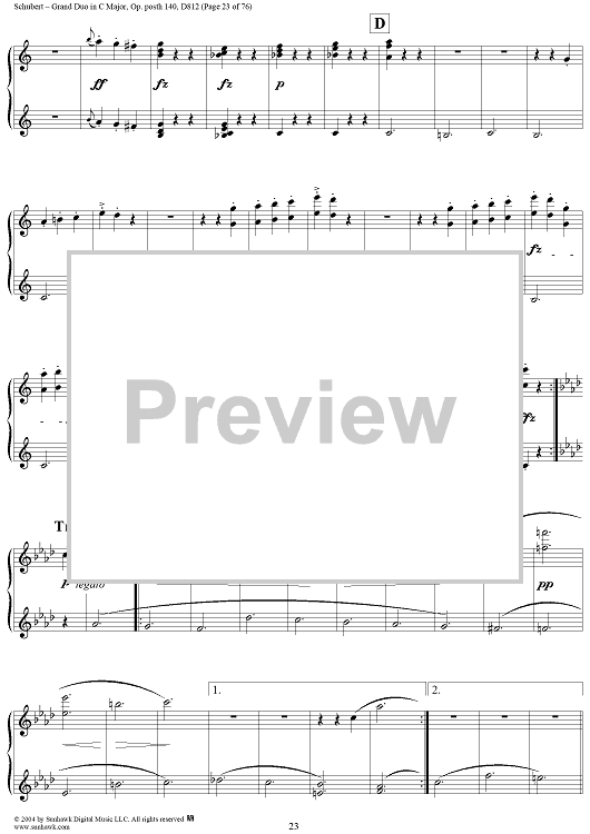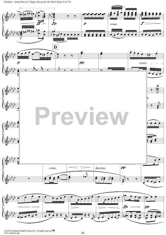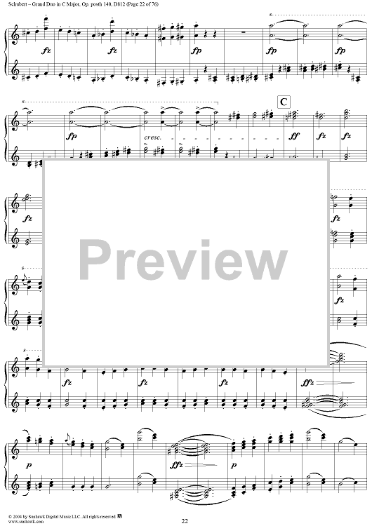 Digital Sheet Music for Grand Duo (Sonata) in C Major, Op.posth 140 by Franz Schubert scored for 1 Piano, 4 Hands; id:297976