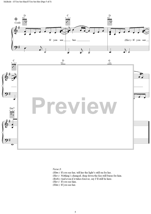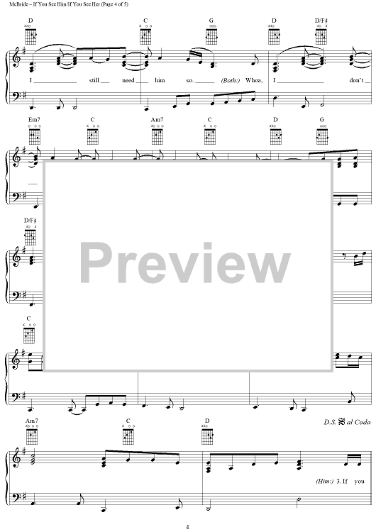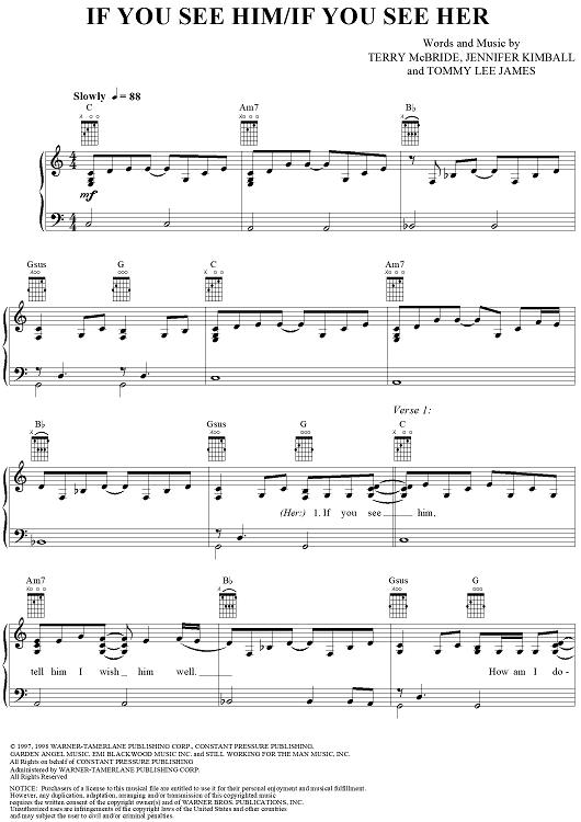Digital Sheet Music for If You See Him / If You See Her by Reba McEntire, Tommy James, Terry McBride, Jennifer Kimball, Brooks & Dunn scored for Piano/Vocal/Chords; id:240724
