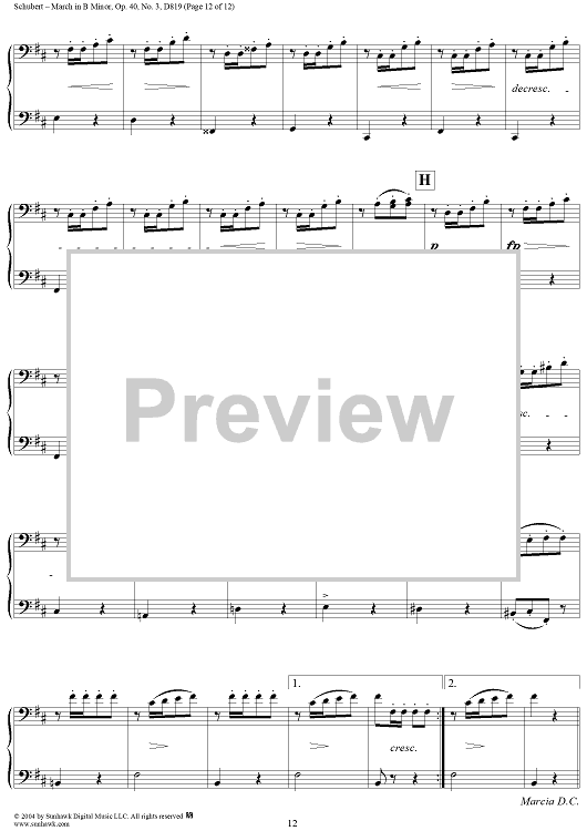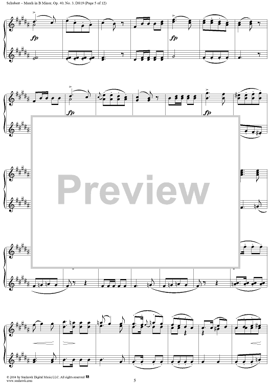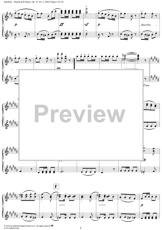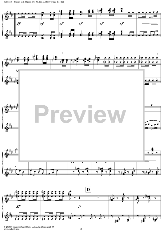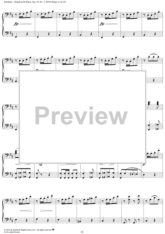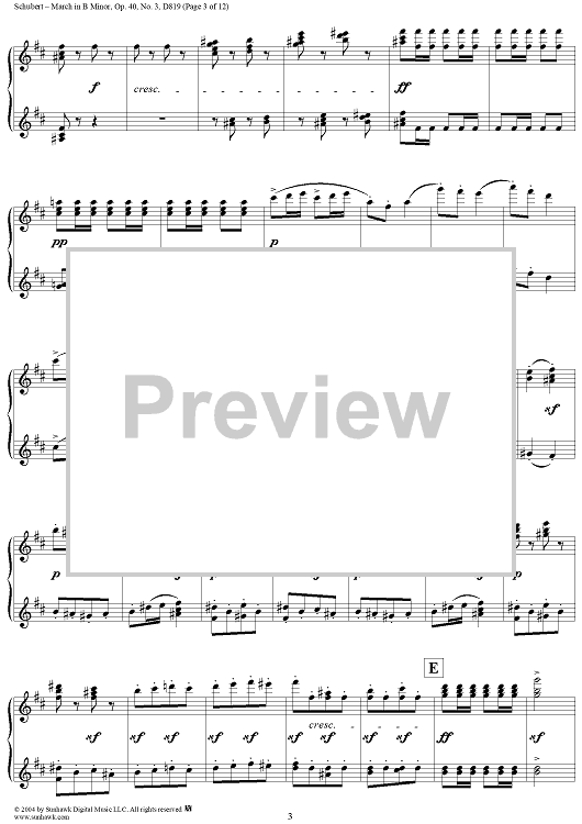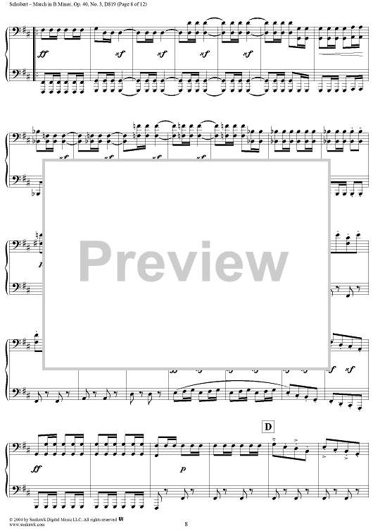 Digital Sheet Music for March in B Minor, No. 3 from "Six Grandes Marches", Op. 40 by Franz Schubert scored for 1 Piano, 4 Hands; id:298042