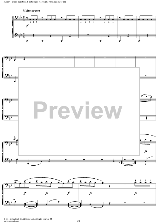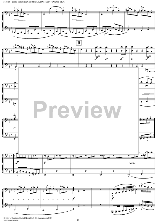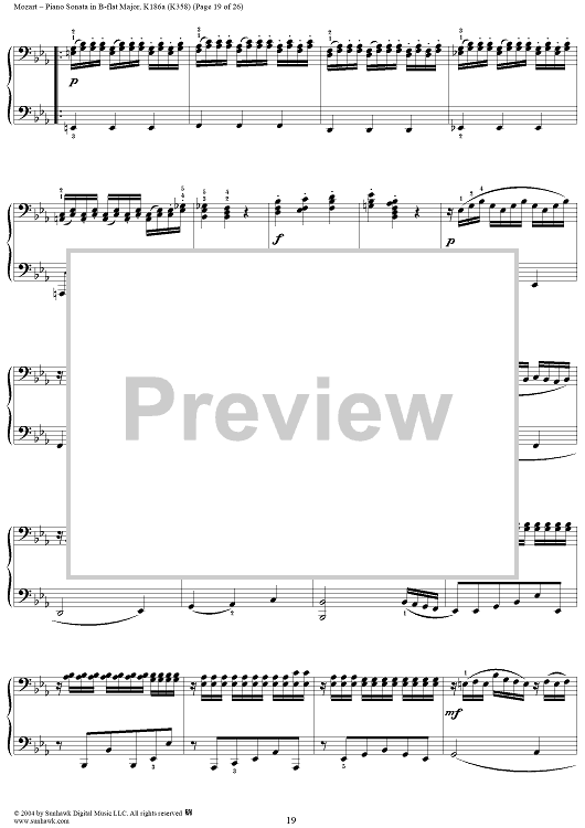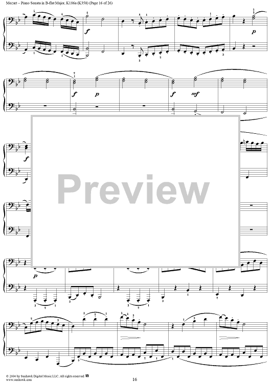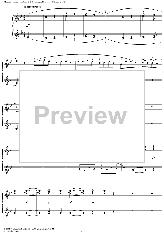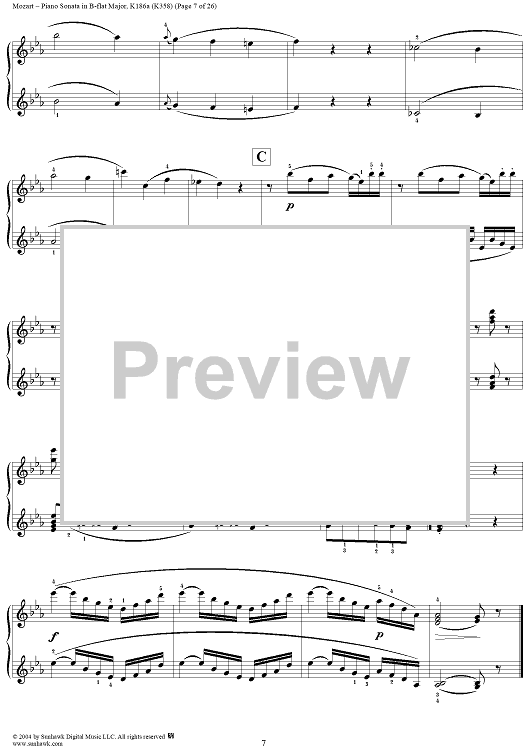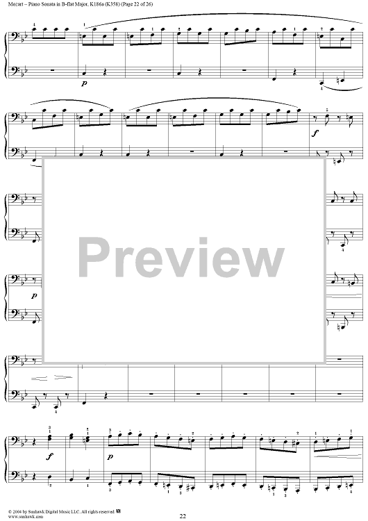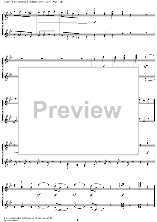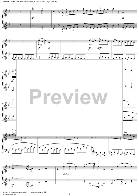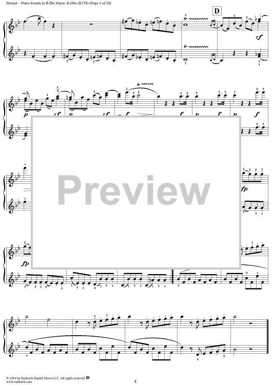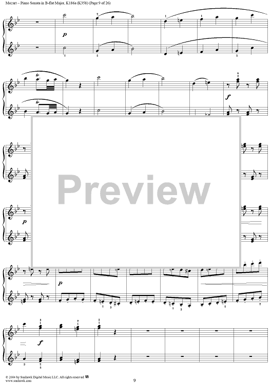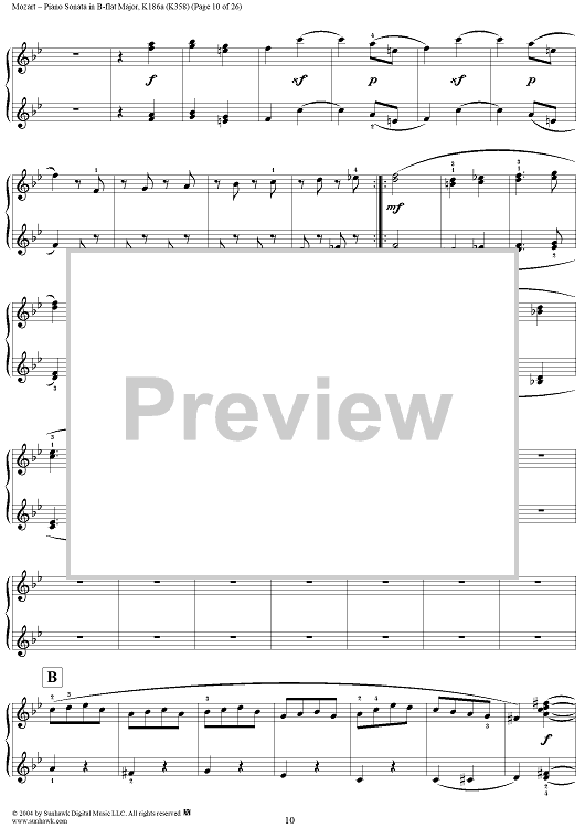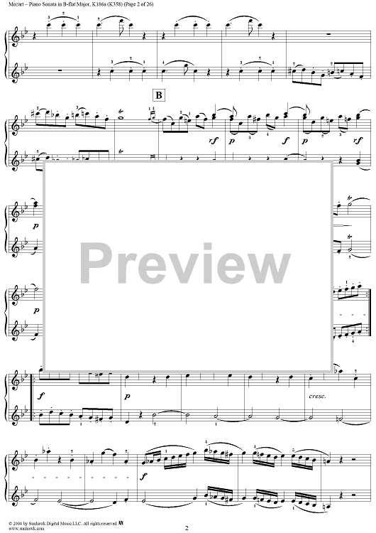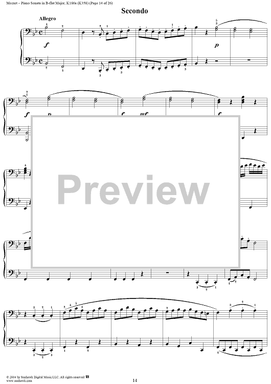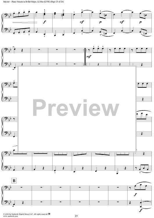 Digital Sheet Music for Piano Sonata in B-flat Major, K186a (K358) by Wolfgang Amadeus Mozart scored for 1 Piano, 4 Hands; id:294579