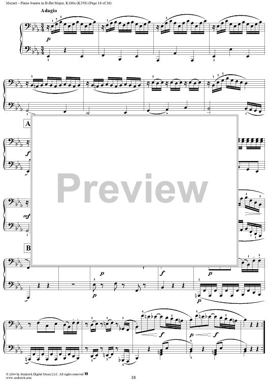 "Piano Sonata in B-flat Major, K186a (K358)" Sheet Music by Wolfgang Amadeus Mozart
