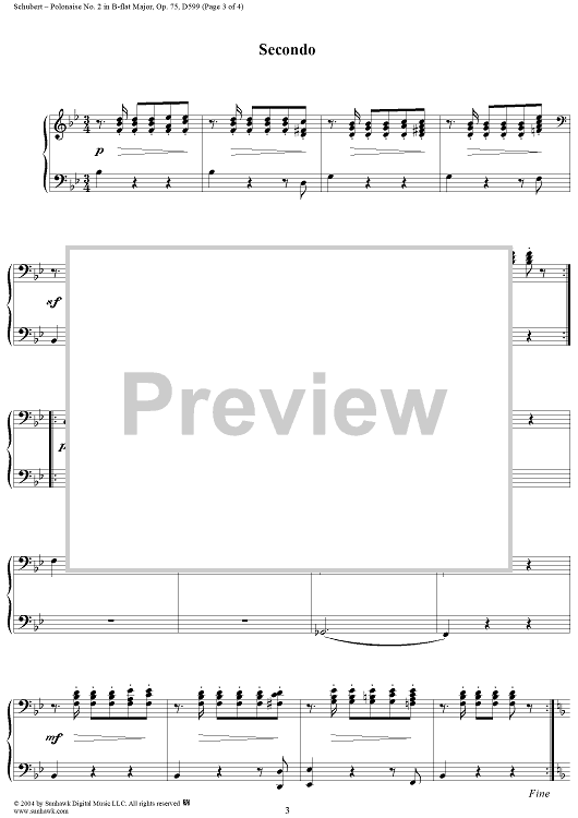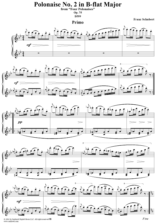 Digital Sheet Music for Polonaise No. 2 in B-flat Major from "Four Polonaises", Op. 75 by Franz Schubert scored for 1 Piano, 4 Hands; id:297978