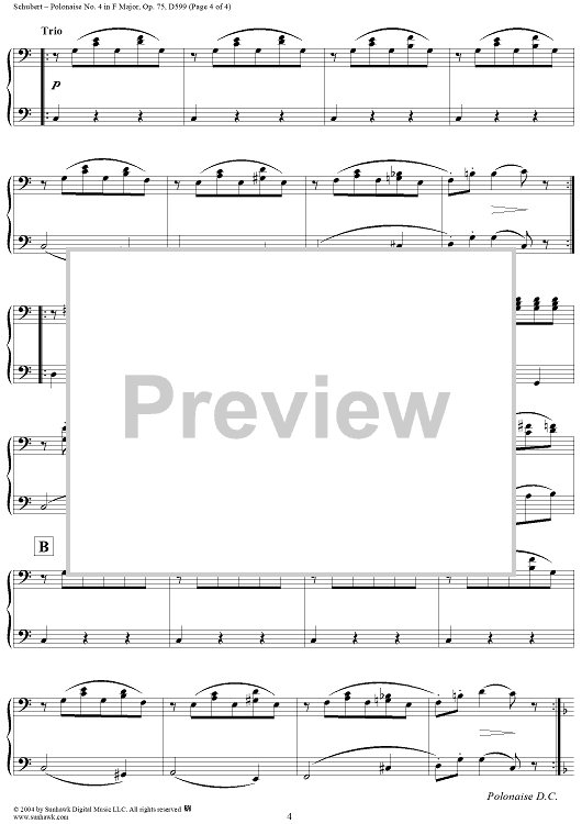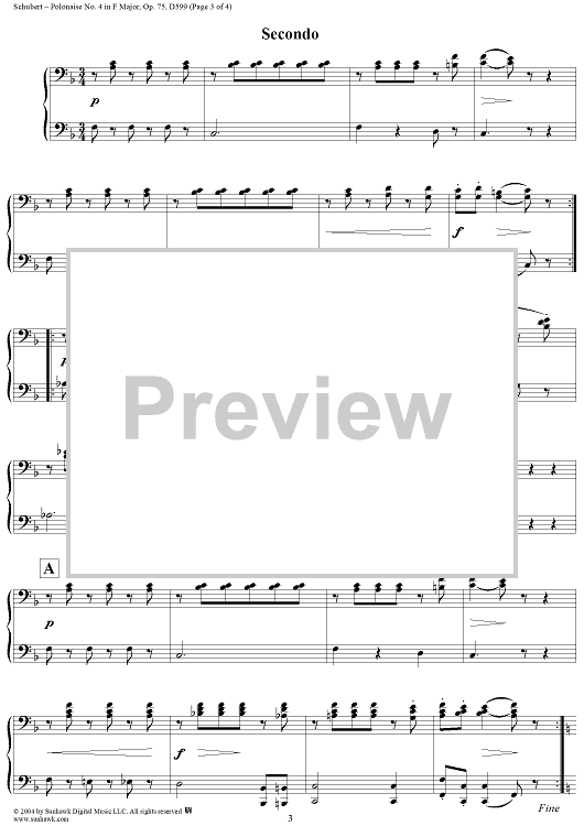 Digital Sheet Music for Polonaise No. 4 in F Major from "Four Polonaises", Op. 75 by Franz Schubert scored for 1 Piano, 4 Hands; id:297980