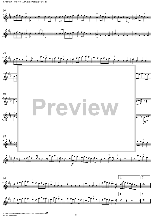Digital Sheet Music for Rondeau: Le Champêtre by Jacques Martin Hotteterre scored for Two Flutes; id:191436