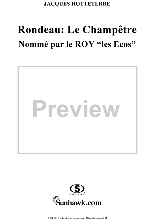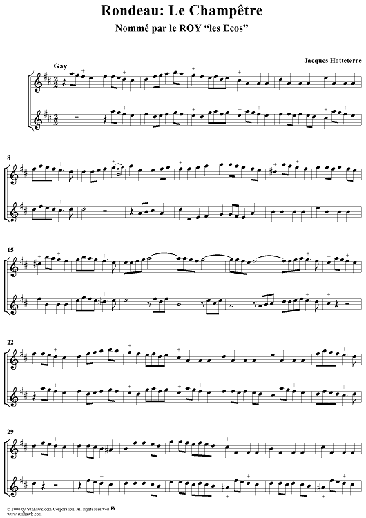 "Rondeau: Le Champêtre" Sheet Music by Jacques Martin Hotteterre