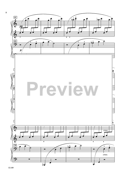Each part plays steady, flowing eighth notes while the other part plays quarter notes in this Impressionistic piece in C major. The perpetual eighth-note movement evokes the image of smooth sailing on a windy day. The ensemble is very easy.