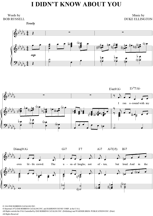 "I Didn't Know About You" Sheet Music by Duke Ellington