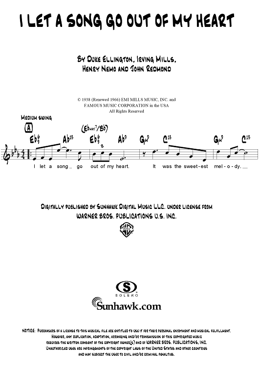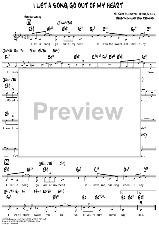 Digital Sheet Music for I Let A Song Go Out Of My Heart by Duke Ellington, Irving Mills, Henry Nemo, John Redmond scored for Lead Sheet; id:307945