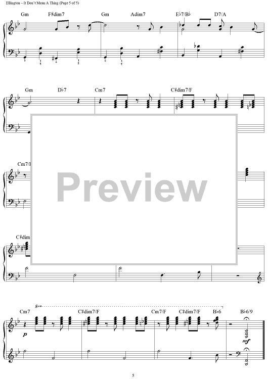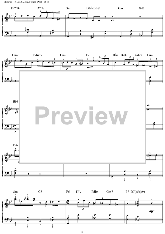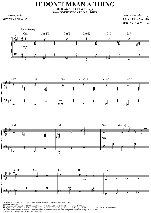 Digital Sheet Music for It Don't Mean A Thing (If It Ain't Got That Swing) by Duke Ellington, Irving Mills, Brent Edstrom scored for Piano Solo; id:465784