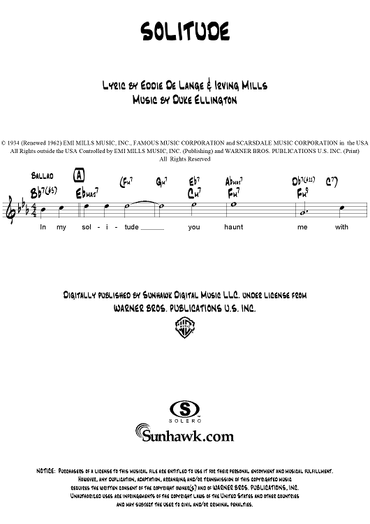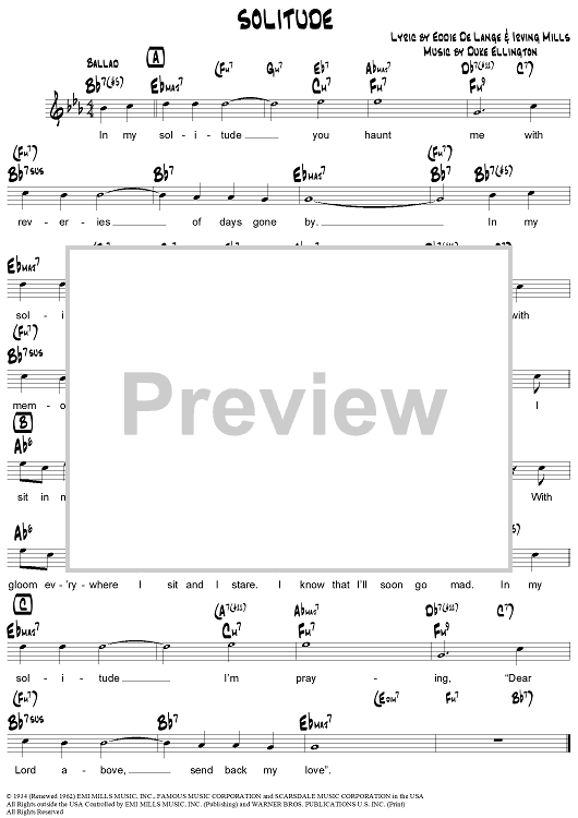 Digital Sheet Music for Solitude by Duke Ellington, Irving Mills, Ella Fitzgerald, Eddie De Lange scored for Lead Sheet; id:312247