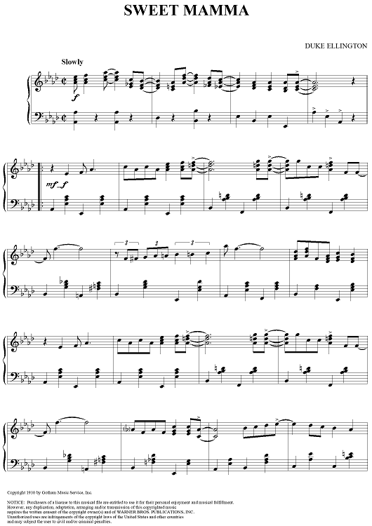 Digital Sheet Music for Sweet Mamma by Duke Ellington scored for Piano Solo; id:116330