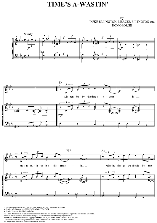 Digital Sheet Music for Time's A-Wastin' by Duke Ellington, Mercer Ellington, Don George scored for Piano/Vocal/Chords; id:270562