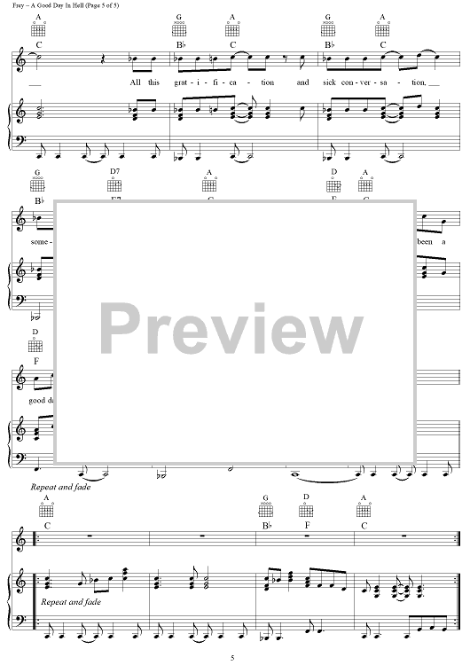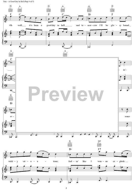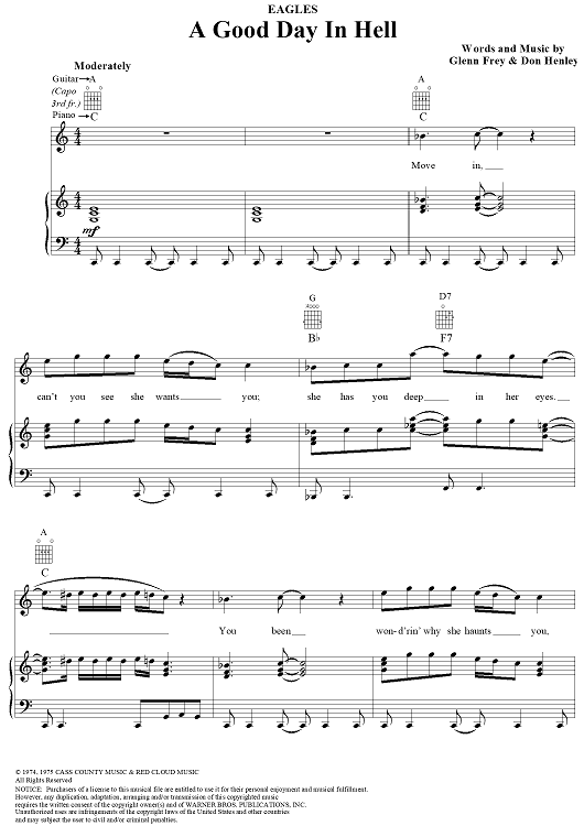 Digital Sheet Music for A Good Day In Hell by Don Henley, Glenn Frey, Eagles scored for Piano/Vocal/Chords; id:112910