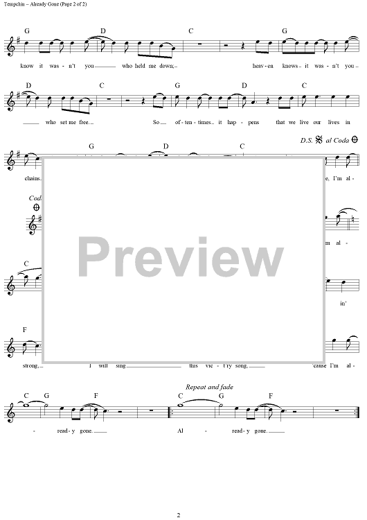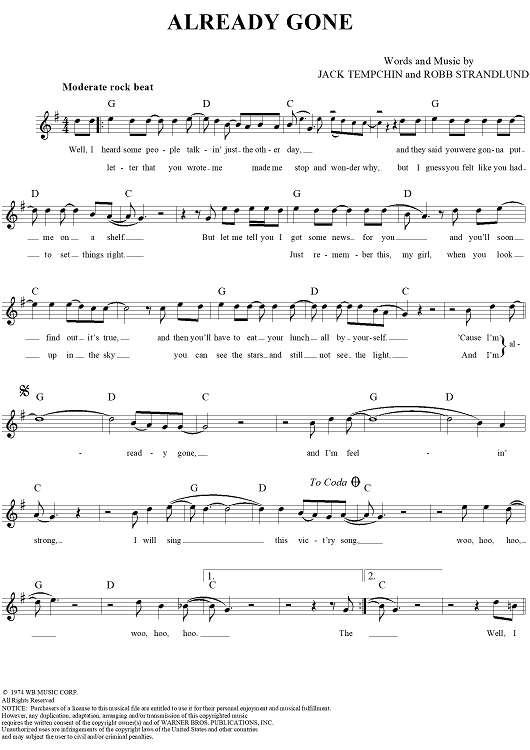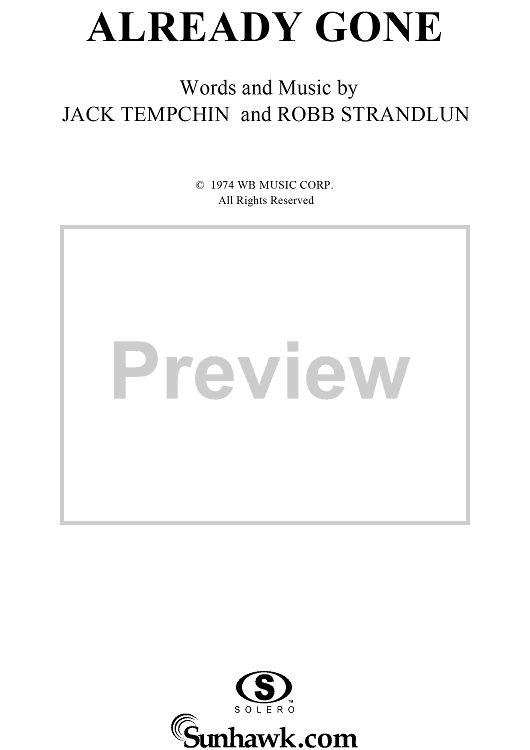 Digital Sheet Music for Already Gone by Jack Tempchin, Robb Strandlund, Eagles scored for Lead Sheet; id:260063
