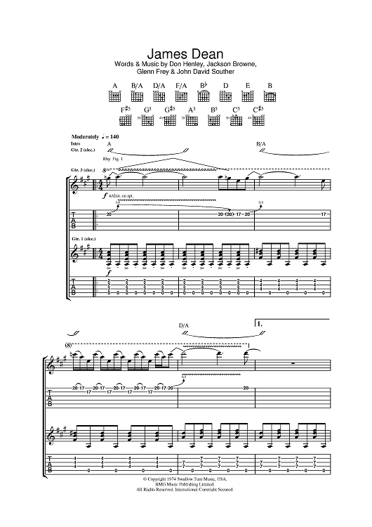Digital Sheet Music for James Dean by Jackson Browne, Don Henley, J. D. Souther, Glenn Frey, Eagles scored for Guitar Tab; id:387752