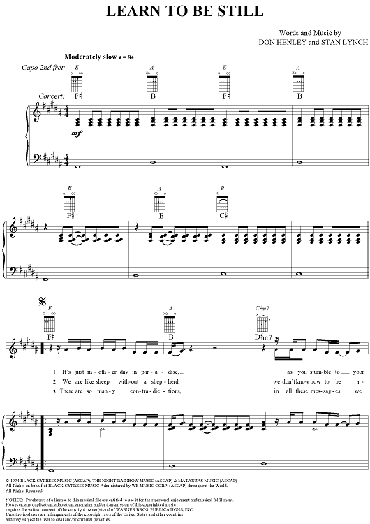 Digital Sheet Music for Learn To Be Still by Don Henley, Stan Lynch, Eagles scored for Piano/Vocal/Chords; id:112917