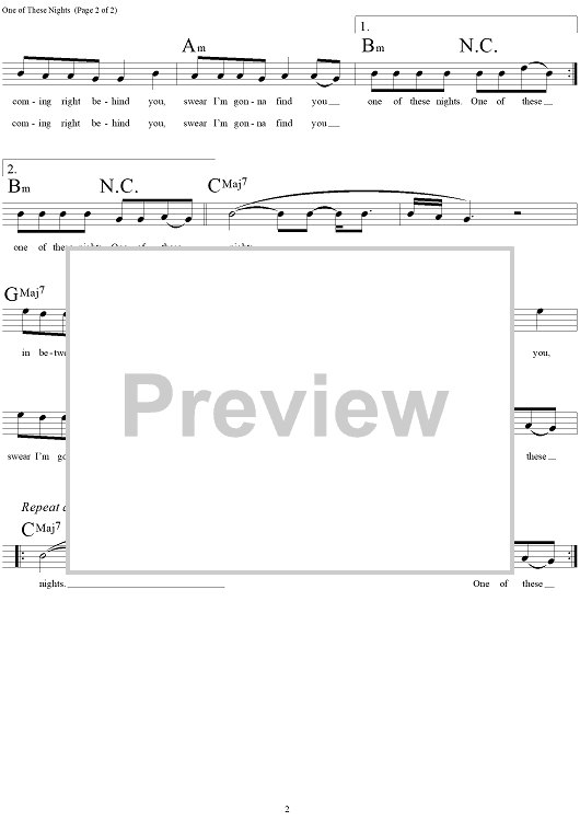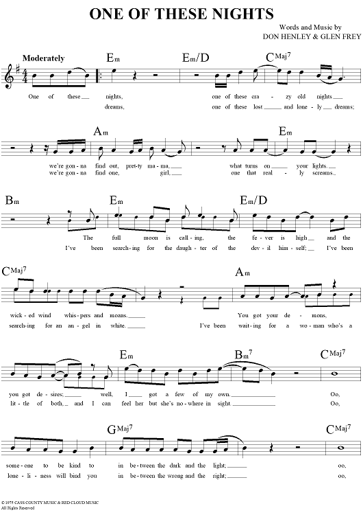 Digital Sheet Music for One of These Nights by Don Henley, Glenn Frey, Eagles scored for Lead Sheet; id:112680