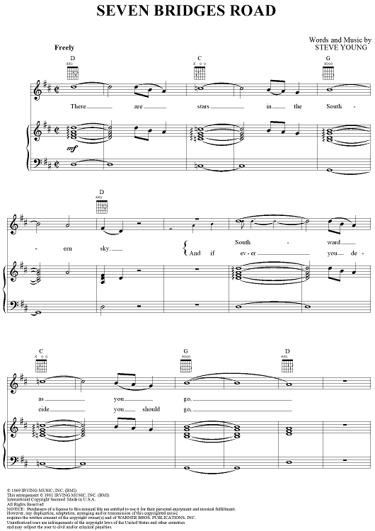 Digital Sheet Music for Seven Bridges Road by Steve Young, Eagles scored for Piano/Vocal/Chords; id:113093