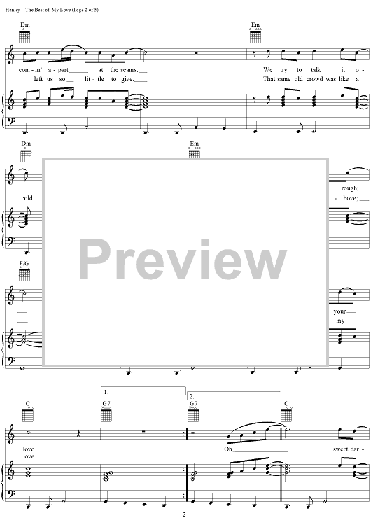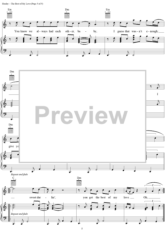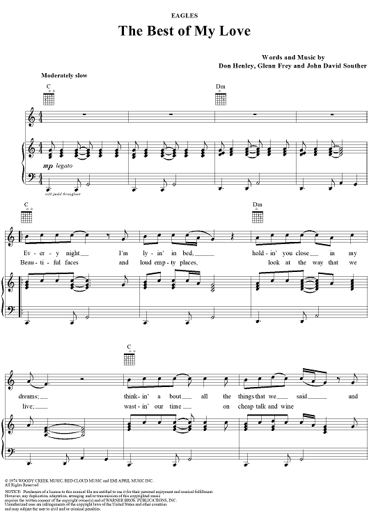 Digital Sheet Music for The Best of My Love by Don Henley, J. D. Souther, Glenn Frey, Eagles scored for Piano/Vocal/Chords; id:110784