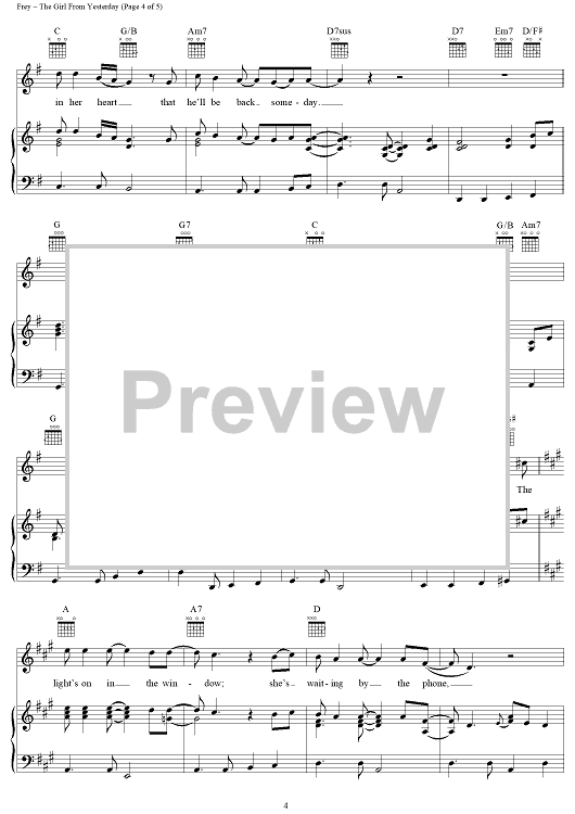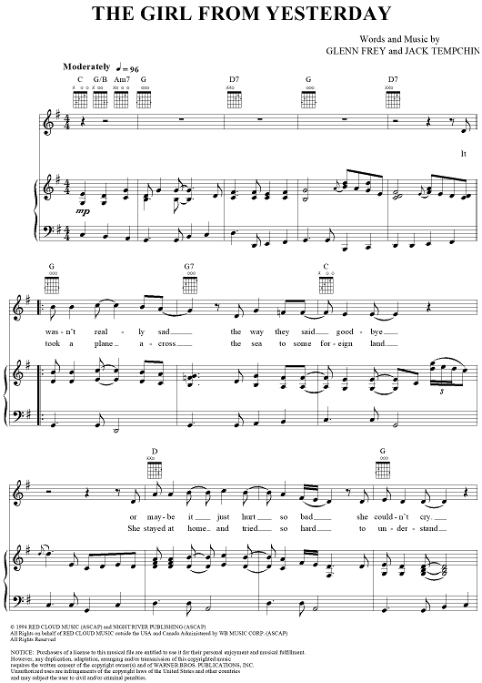 Digital Sheet Music for The Girl From Yesterday by Jack Tempchin, Glenn Frey, Eagles scored for Piano/Vocal/Chords; id:112698