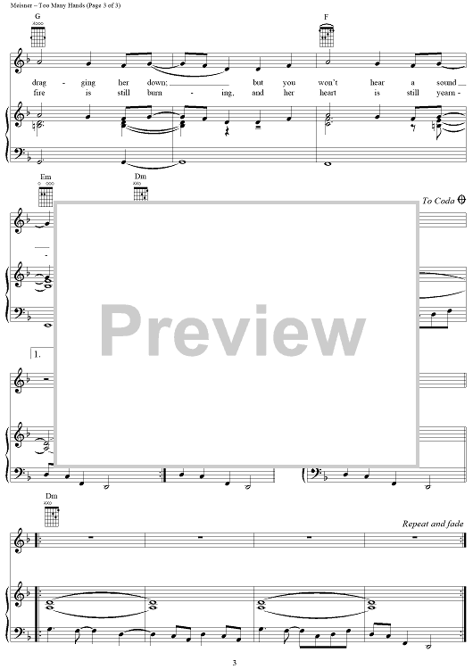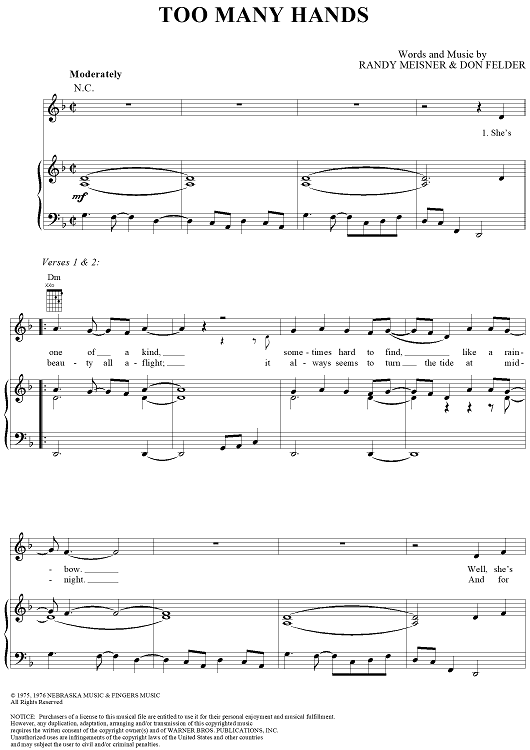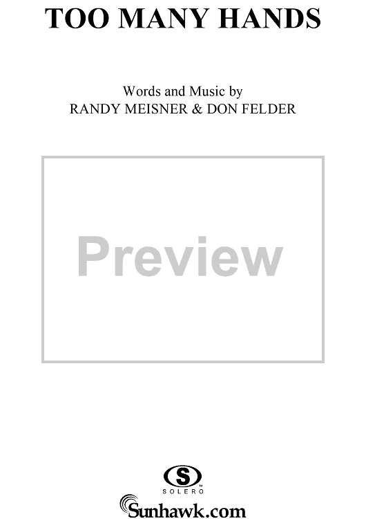 Digital Sheet Music for Too Many Hands by Don Felder, Randy Meisner, Eagles scored for Piano/Vocal/Chords; id:219081