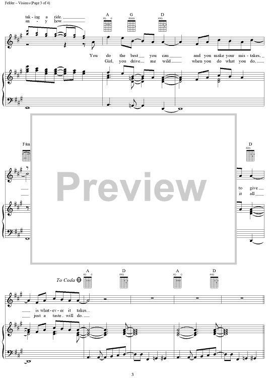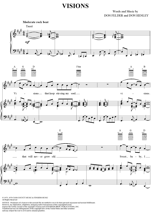 Digital Sheet Music for Visions by Don Henley, Don Felder, Eagles scored for Piano/Vocal/Chords; id:112751