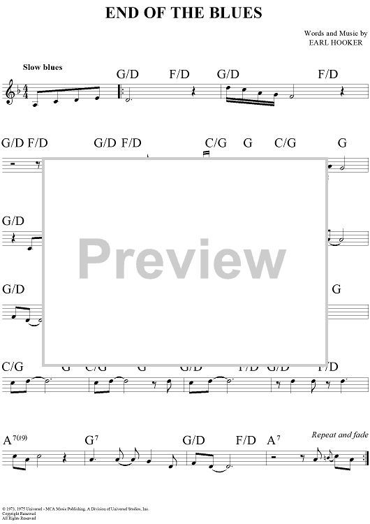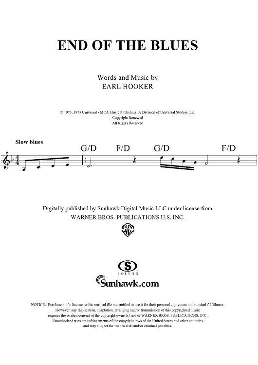 Digital Sheet Music for End of the Blues by Earl Hooker scored for Lead Sheet; id:290981