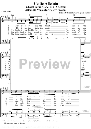 Digital Sheet Music for Celtic Alleluia (Alternate Verses for Easter Season) by Fintan O'Carroll, Christopher Walker scored for Four-part Mixed Chorus; id:95907