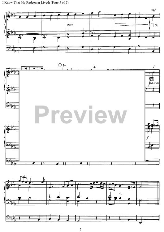 Digital Sheet Music for I Know That My Redeemer Liveth by George Frideric Handel, Robert J. Hughes scored for Organ Solo; id:501413
