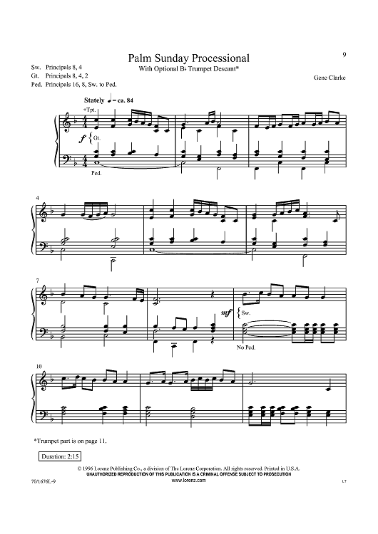 Digital Sheet Music for Palm Sunday Processional - With Optional Bb Trumpet Descant by Gene Clarke scored for Organ Solo; id:434124