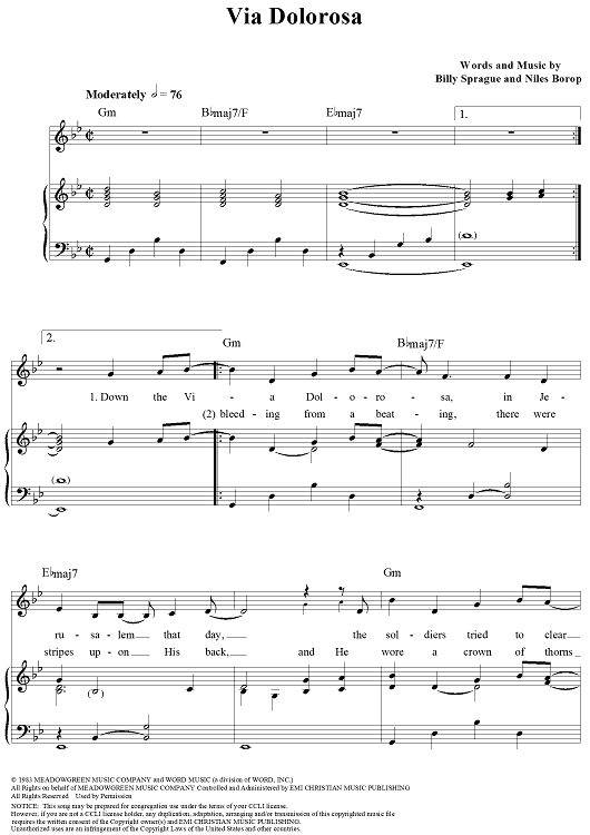 Digital Sheet Music for Via Dolorosa by Niles Borop, Billy Sprague scored for Piano/Vocal/Chords; id:113667